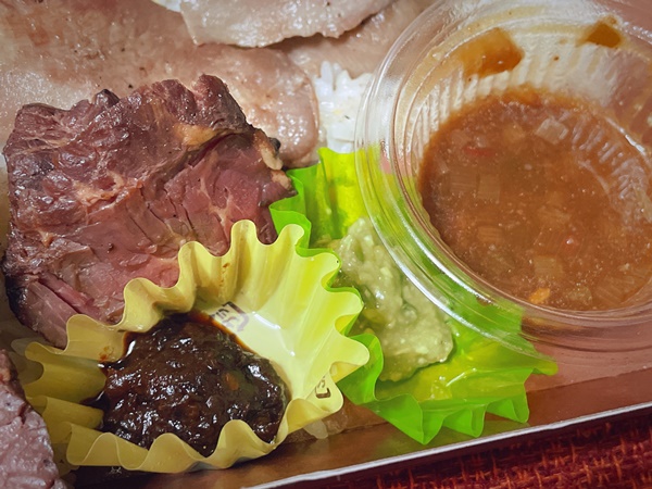 お肉の味変用に南蛮味噌、わさび、あともう1種類シャリアピンソース的なものが入ってます。