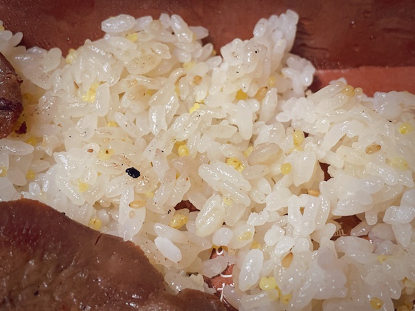 ご飯には雑穀っぽいものが入っています。これがプチプチしていい感じ。