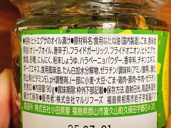 原材料はこちら。かけるあおさと似たような感じで、ハラペーニョが追加されてますね。これがピリ辛の要だ。
