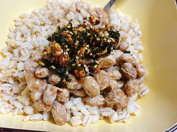 醤油や納豆のタレなしで、かけるあおさピリ辛と納豆を混ぜただけなのに相乗効果が半端ない。和風がちょっと洋風に変わるので、たまには納豆を違った感じで食べたいなと思っている人は、是非こちらの『かけるあおさ×納豆』を試してみてください♪