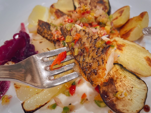 また、料理名のフレッシュ野菜のビネグレットソースに恥じない、たっぷりお野菜の入ったソースと付け合せのグリル野菜もまた最高。野菜あんまり好きじゃない私でも、美味しく食べられました!美味しいソースってすごいな…。