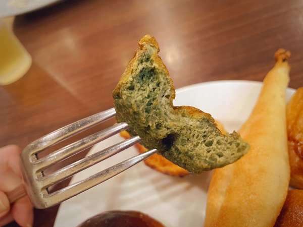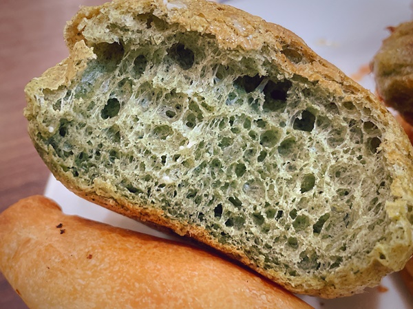 そしてこちらのグリーンのパンは、よもぎロール。これも私の好きなパンで、サンマルクさんに来たら必ず数個は食べる商品(>_<)よもぎの風味がなんとも言えない、体に良さそうなパンです(*^^*)