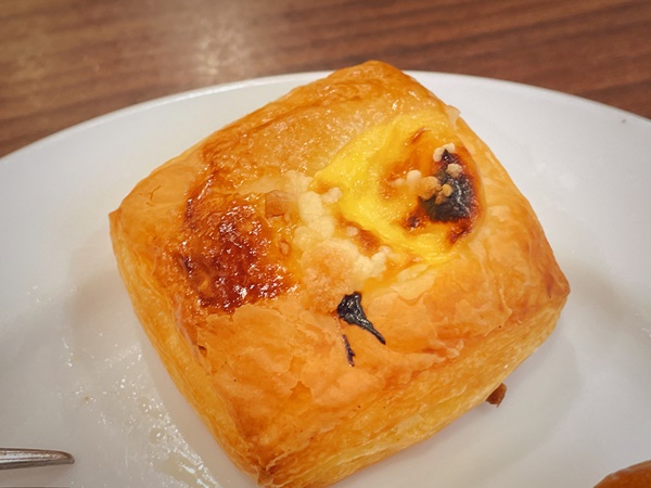 カスタードっぽい感じで、個人的にエッグタルトチックと思ったデニッシュ。甘いのがお好きな方に食べてもらいたいパンです。