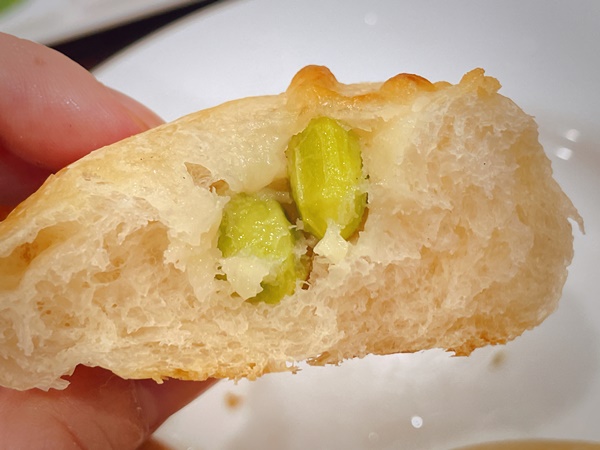 小ぶりながらも枝豆とチーズがちゃんと入っています。ふんわりだけどちょっともちっとした感じがして、これもおつまみ系パンかな。