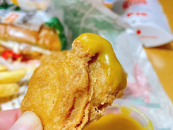 ナゲット5ピースにアップルパイまで付いてくるボリュームは…相変わらず凄いです。しかも、マスタードも選べるようになっていたのは嬉しい!