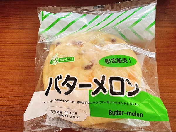パッケージにはレーズンを練り込んだバター風味のメロンパンにマーガリンをサンドしました。と書いてあります。ちなみに、今回購入したのはロピア!税込214円で購入出来ました☆