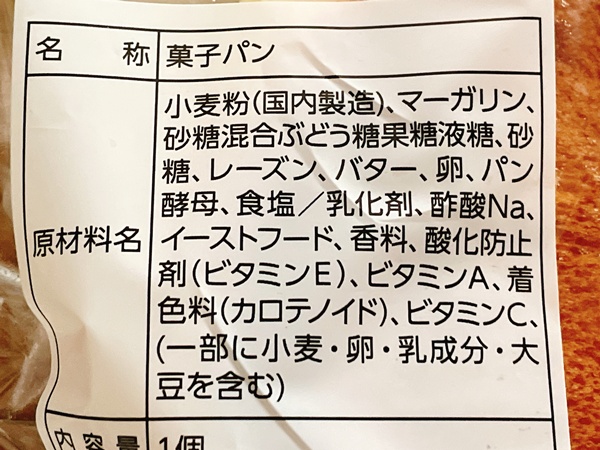 で、いつもの裏面チェック。バターメロンパンだけどマーガリンが多め。いや、もうこのご時世バターの値上がりもすごくて…マーガリンの方が多いのはもう仕方がないよね。