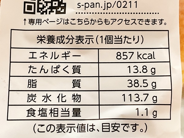 カロリー 857kcal、たんぱく質13.8g、脂質38.5g、炭水化物113.7g、食塩相当量1.1gと、もともと高カロリーなメロンパンがこのビッグサイズになり、さらに中にはマーガリン…。まさに「カロリー爆弾」と呼ぶにふさわしい貫禄。ダイエット中には全く向かない商品ですね(^^)