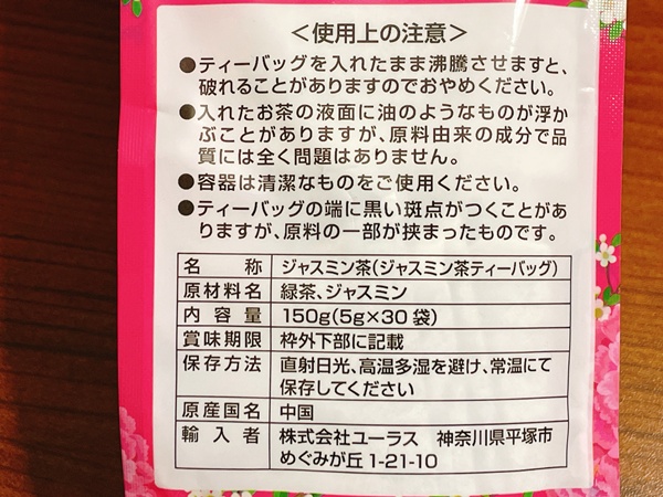 原産国は中国なんですが、そもそもジャスミンティーって中国茶なので全く問題なし。