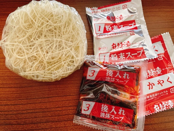 そしてこちらの麻辣湯はこんな感じでセパレートで入っているので、春雨など開封してお湯を入れるタイプとなっております。後入れの液体スープもあるので間違えないでね。