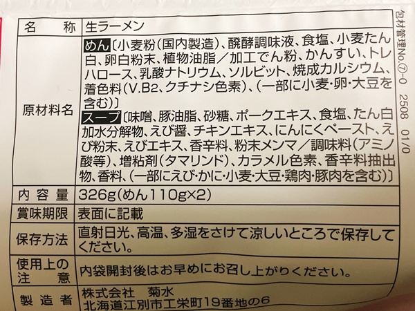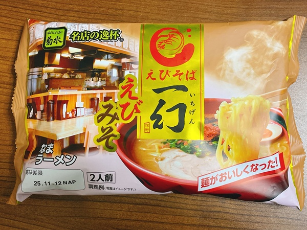 エビが好きな私。そんな私がロピアで見つけたのがこちらの『えびそば一幻 えびみそ』2人前で税込322円(2025年10月下旬の価格)生ラーメンです。えびそば一幻さんは北海道・札幌の有名店さんで、こちらの生ラーメンを作っているのは菊水さん。以前紹介したペヤングの焼きそばチルドの会社さんでした!