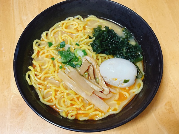 今回のトッピングはメンマ、わかめ、ゆで卵、ネギとシンプルかつラーメンの味がよく分かる具材にしてみました。