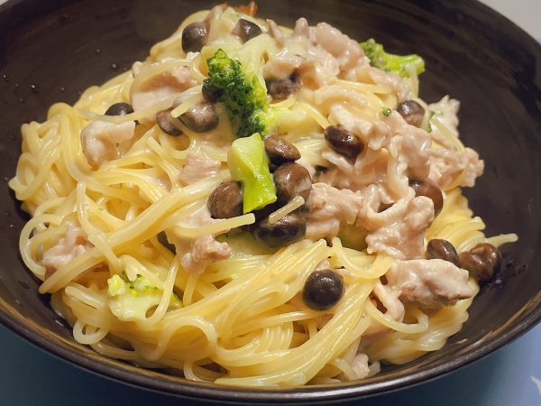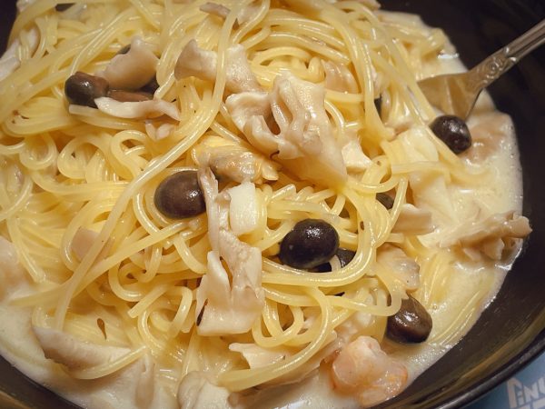 舞茸とシーフードを追加してミルクスープパスタにしたりと、パスタレシピの幅が広がる広がる。ほんと、これ美味しいし使い勝手がいいのに…
