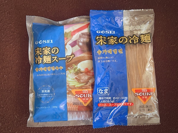 今回、初めて食べたのはこちらの『GOSEI 宋家の冷麺』です。私、漢字が読めず…調べたら韓国語読みだと『宋家(ソンガネ)』、日本語読みだと『宋家(そんけ)』でいいみたい。漢字難しい…。