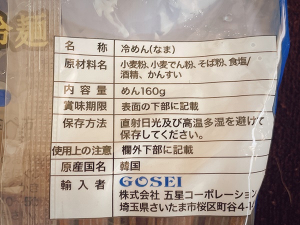 裏面チェック。麺にはTHE・韓国冷麺!のそば粉が入っております。