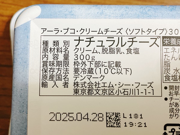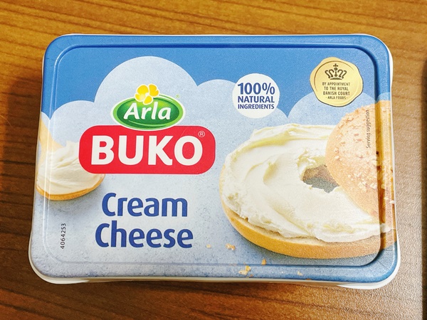こちらのチーズ、正式名称は『Arla BUKO Cream Cheese(アーラ ブコ クリームチーズ)』といいまして、デンマークのメーカーさんなのですが有名なので知っている方も多いと思います。