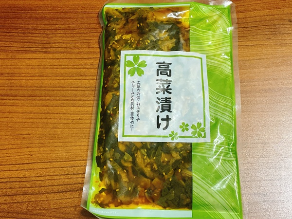 今回、私が購入したのは普通の高菜漬けなんですがでこれとは別にピリ辛の高菜漬けもあったので多分、そっちの方が一般的な高菜漬けに近いかもしれない。