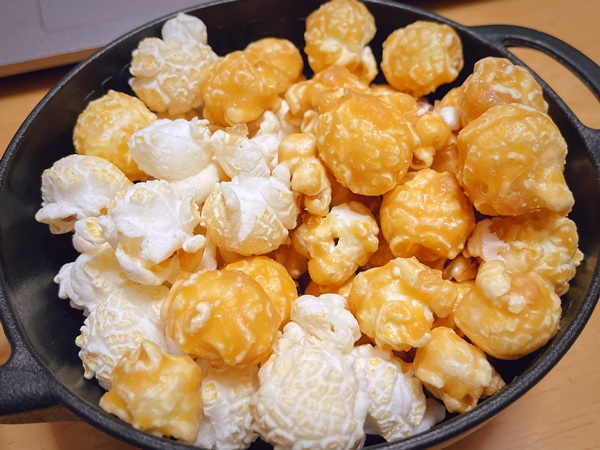 味もしっかり濃厚なので、濃い味が好きな方、甘いのが好きな方にはおすすめのポップコーンです。あと、ブラックコーヒーとかストレートの紅茶にも合います!