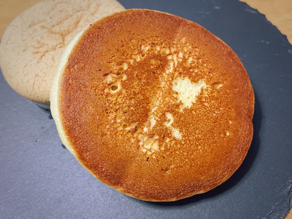 もう一つ、特徴的なのがこの銅鑼ケーキの皮。普通のどら焼きの皮とは違ってもっちりしています。なおかつ、どら焼きの皮というよりももっちりパンケーキ系といった方がしっくり来るかもしれない。