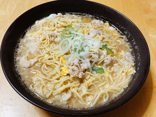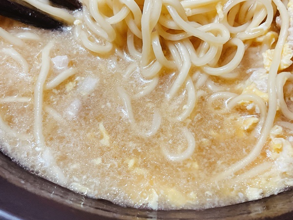 たしかに他の豚骨ラーメンの袋麺よりは濃いのですが、濃厚さが足りなくてガツンと濃厚豚骨ラーメンを期待していた私には物足りなかったです。(単純に私が濃いめの豚骨スープを脳内変換で豚骨ラーメン屋さんのスープを想像していたのが悪いんですけど。)