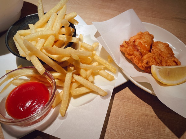続いてやってきたのは北海道産ポテトフライ塩バターと、コッコちゃんの塩ザンギ。コッコちゃんの本店は北海道とのことで、北海道産の食材多めです。そして、これが美味しい!