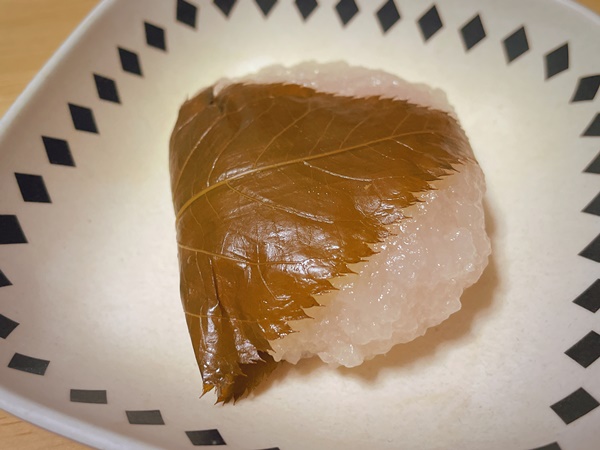 桜餅のイメージって基本ピンクを思い浮かべる方が多いと思うのですが、こちらは白いさくら餅でございます。見た目は白いのですが、桜の葉から良い香りがします。この香りを感じると春がきたんだなぁ…という気持ちにさせてくれるというか、日本人で良かったなぁって思います。