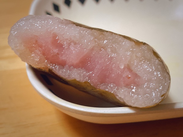 さてさて、初めての白いさくら餅に興奮しながらパクついてみると…わわわ!