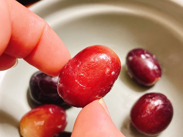 甘さも酸味も、そして肝心の「旨味」も感じられず。たまに「普通」の味の粒も混ざっていますが、基本的には味がぼやけています。