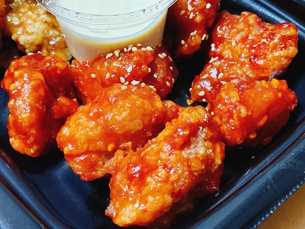 あ、これ普通に美味しいぞ…ヤンニョムチキンとして美味しいと思う。流石に衣がカリカリではないのだけど、それでもクオリティは高いと思う。ただヤンニョムの辛さは普通に感じるのでお子様は無理かも。