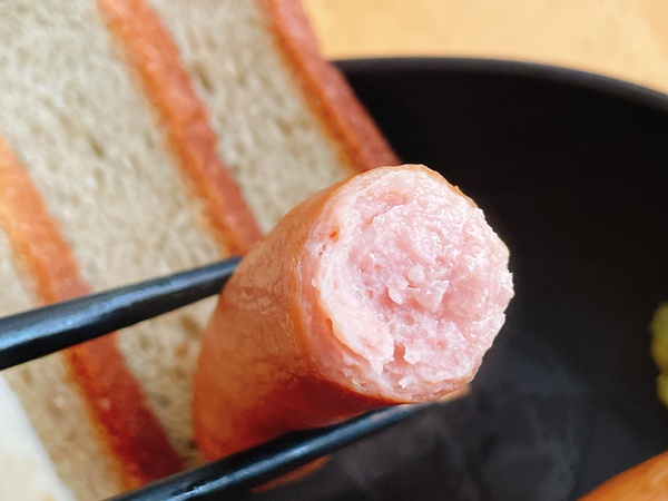 はい、それでは実食!と、その前にこちらのウインナーですが一般的なウインナーに比べて、少しサイズが長めなのが特徴的。物によっては1.5倍位の長さかな。