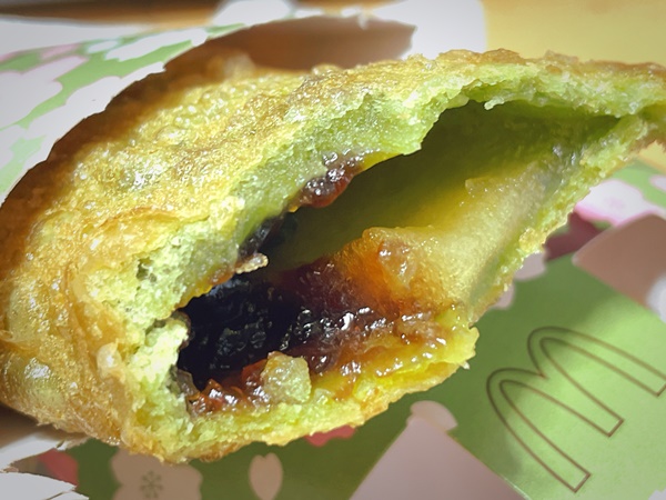 マックのパイ自体が久しぶり!ほんのり緑色の生地がいいですね。抹茶好きなので、ついついCMに惹かれて購入してしまった…恐るべしマックのトラップ!