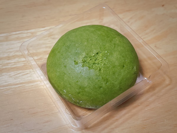 今回、私がいただいたのはこちらの『抹茶まんじゅう』です。見た目が緑で愛らしい姿をしております。