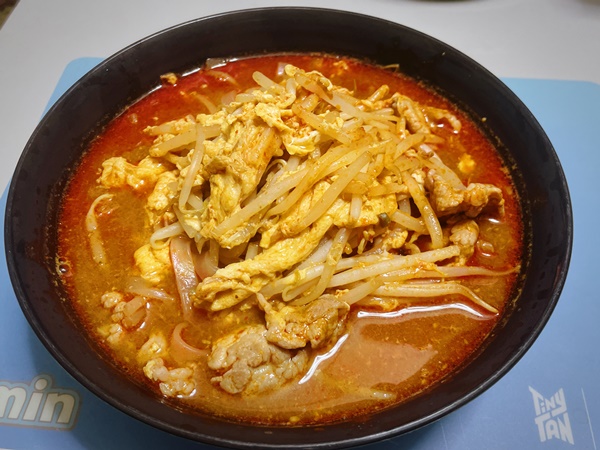 具材はお好みで色々トッピングできるのが、おうちごはんのいい所!この時は豚肉、もやし、卵を入れてます。