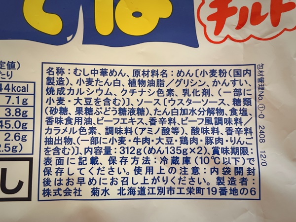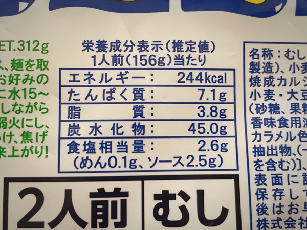具材なしの麺とソースだけだとカロリーは244kcalと、そこまで高くないですね。ただ炭水化物量だけは45gとなっています。こればかりは小麦粉使ってるから仕方ない!
