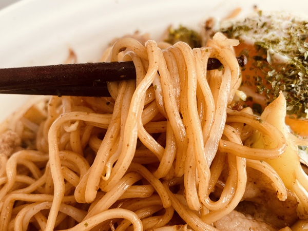 麺は蒸し麺なのでもちもち。カップの焼きそばとは違っています。