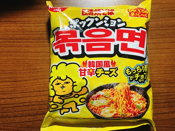 『日清焼そば ポックンミョン 韓国風甘辛チーズ』こちらはダイソーにて108円で購入しました。あの…実は、こちらの商品…私実は韓国の袋麺(ブルダック)だと勘違いして買ったものでして(笑)