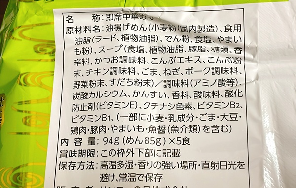 期待が上がっても裏面チェックは忘れません。こちらの麺にはやまいも粉が入っているようで、どんな感じになるのか楽しみ。スープも鰹や昆布など入っていますね。これはスープにも期待しちゃう。