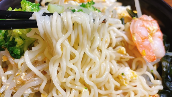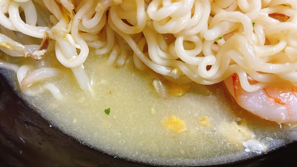 麺はこちら。”しなやかでコシのあるのど越しのよい食感のめんです。”とのことでしたが、私が茹ですぎたのか…つるつる麺だけどコシは感じられませんでした。ただ、コシを感じられなかったからと言って微妙か?と聞かれると普通に美味しいインスタント麺という感想。