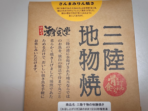 潮風堂『三陸地物焼』こちらでございます☆常温保存可能の焼き魚ですって…ちょっとびっくり!パッケージデザイン素敵&骨まで食べられるとの事でわくわく!