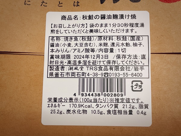 こちらも骨まで食べられる商品ですね。醤油麹漬焼きって初めて食べます。