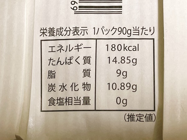 カロリーはこちら。90gでカロリーは180kcal。