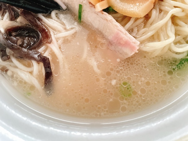 脳内イメージで博多豚骨の濃厚なスープを描いていたので、ちょっとがっかり…。もう少し豚骨要素欲しいなあという感じ。ただ、スープが味気ないとかじゃなく、普通に美味しいのだけど濃厚豚骨スープではないという私個人の意見です。反対にちょっと濃いめの豚骨っぽいラーメン食べたいなあっていう人には、ちょうどいい感じかも。