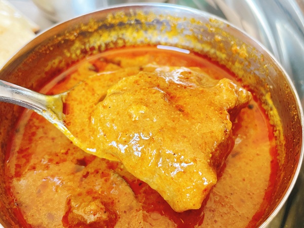 チーズナンをつけて食べるとマイルドになるのですが、濃厚さは増すのでお腹に別の意味でガツンときます。
