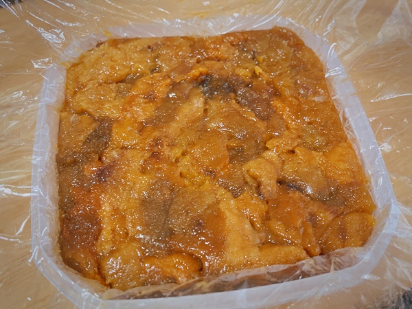 あとは瓶詰めよりも、こういったプラスティック製の容器に入った塩うにだと冷凍もし安くておすすめ。すぐに食べきれない時は小分けにして冷凍保存しておくと、長期間保存も可能になりますよ。