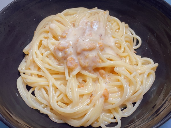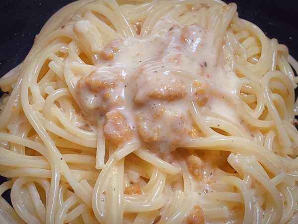 今回はシンプルに牛乳と塩うに、塩コショウと味の素だけで作ったのですが、シンプルながらも塩うにがクリーミーになり人によっては感じる生臭さも消えるので、はずれの塩うにを買ってしまった方もクリームパスタにしてみるというのもアリだと思います。